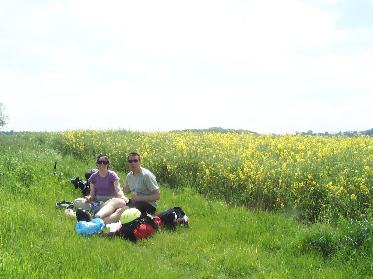 We kept consulting the map to try and keep on the right path. We joined the Thames Path at one point and had to cross the stream. On the other side we were riding right next to a field of golden canola - it was magnificent. Anyway this all took a long while, so we decided to have lunch. Following our new practice we had brought it with us, which again proved a good idea.