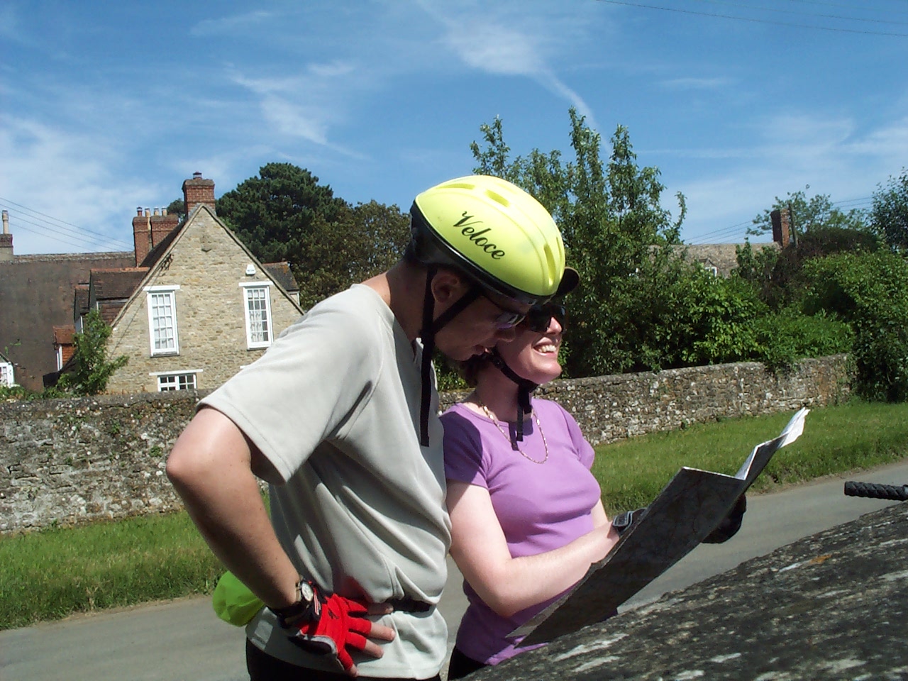 Anyway we didn’t know that at the time and headed off. The countryside was still beautiful. We were away from most of the traffic, in amongst the little country roads. The canola fields were flowering, the sun was shining, it was magical. We really felt like we were seeing England! We enjoyed it immensely, until we started to climb the longest hill of the day. This is where reading the contour lines would have been good - having a mental expectation of the size and length of the hill certainly helps me. But in this case, all we could do was mutter, stop every 200 metres to catch our breath, and try to ignore the pangs in our stomach!